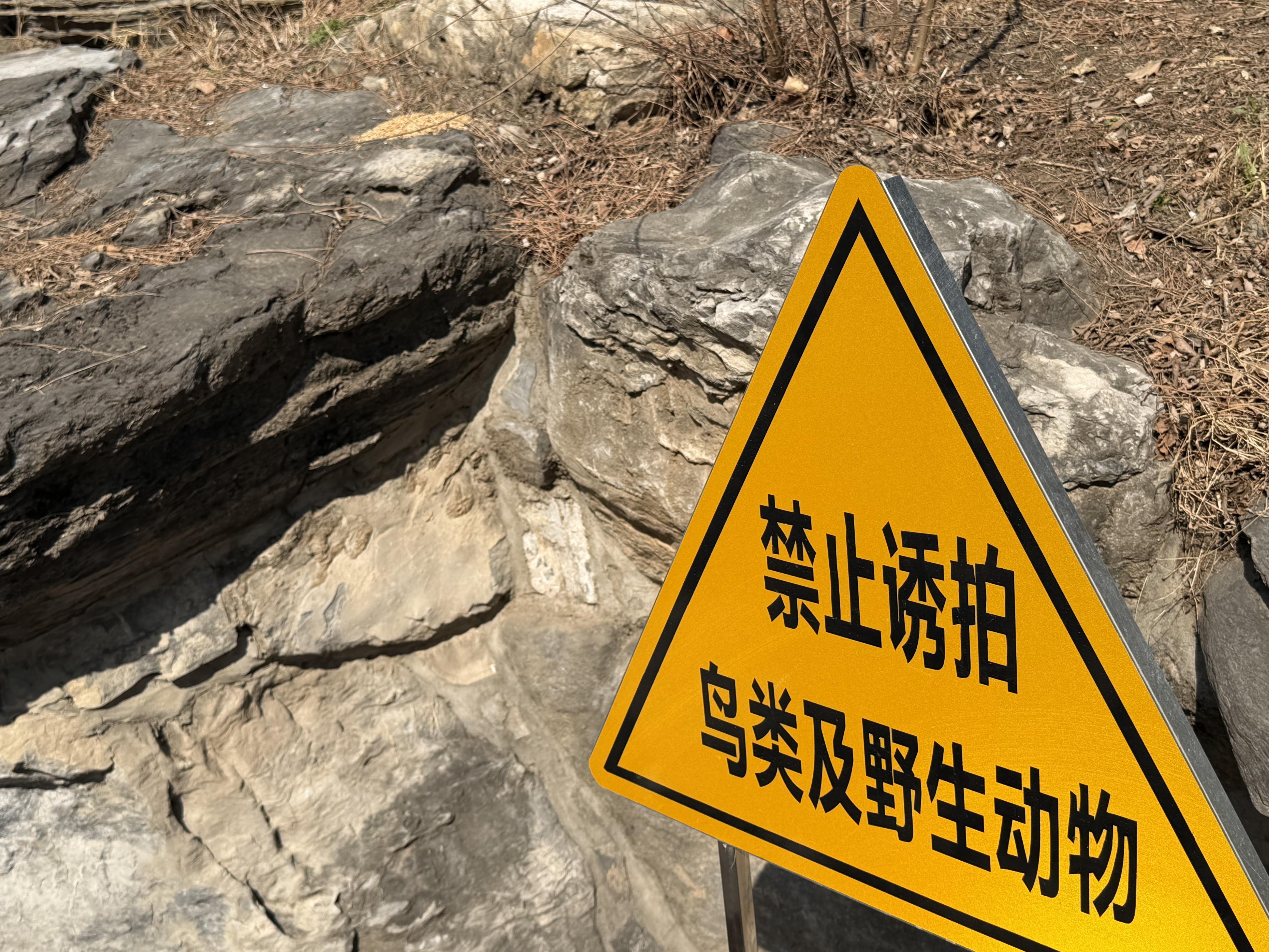 奥森公园,一块警示牌提示市民勿诱拍。