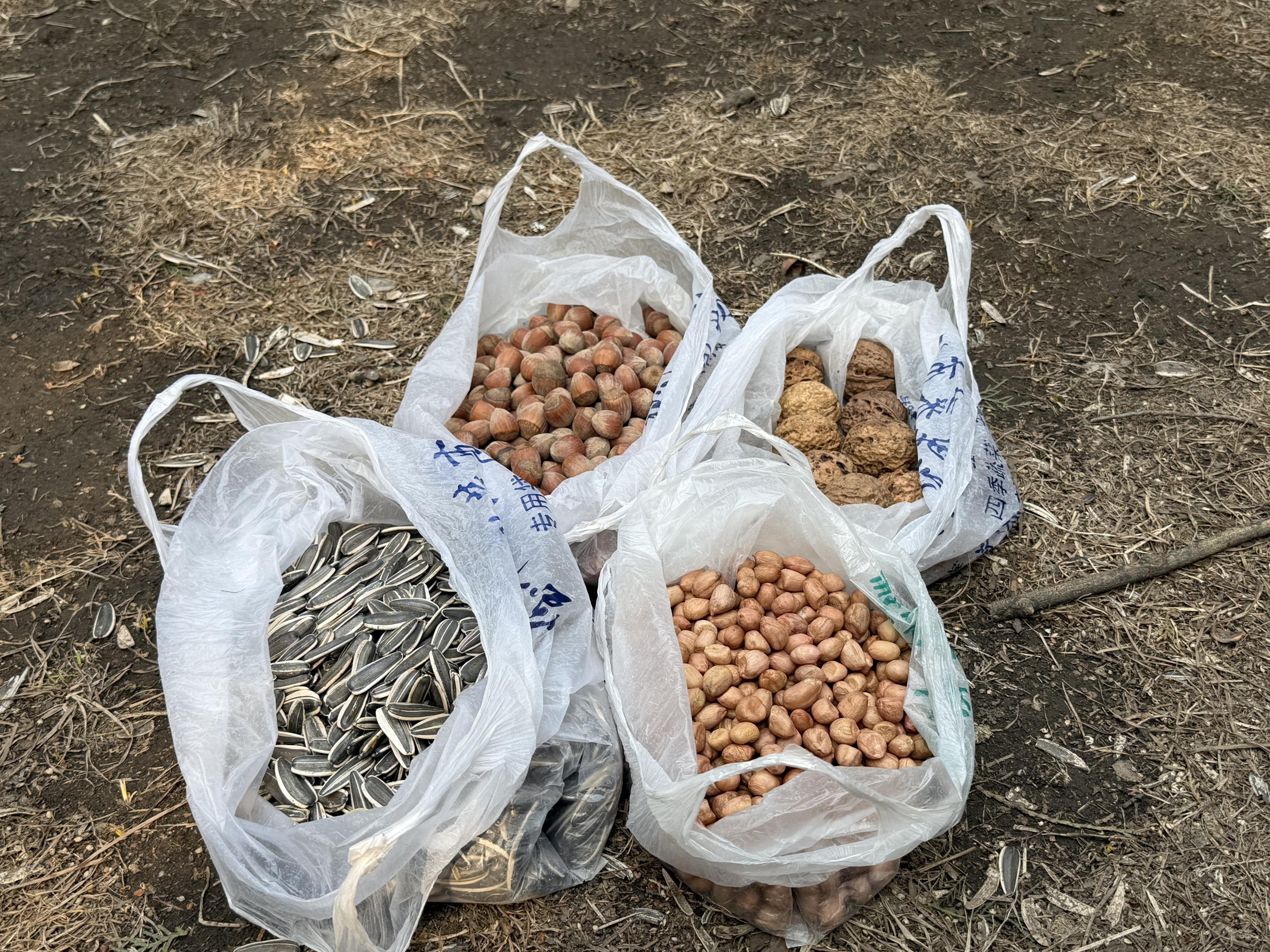 刘阿姨为松鼠准备的各类坚果。