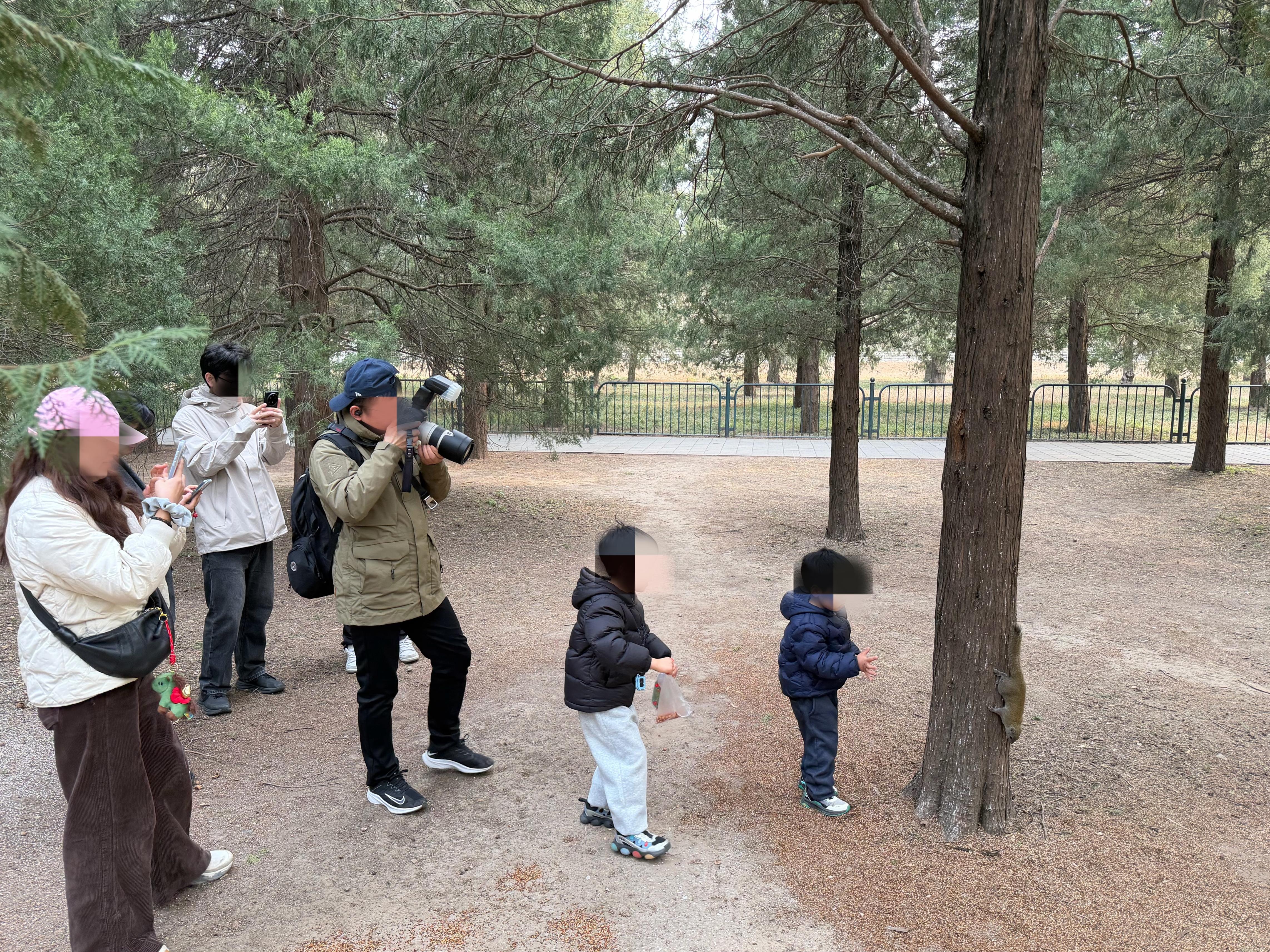 记者周末走访发现,在陶然亭公园,一些景观石上摆放着花生、核桃等坚果,不断有松鼠跳下树来进行“搬运”;在奥森公园,一位摄影师无视“禁止诱拍野生动物”的警示牌,撒下好几把杂粮;在天坛公园,因松鼠数量众多,投喂现象更加普遍,不少家长趁着节假日,带着孩子、拎着食物,穿梭在林间寻找、投喂松鼠。