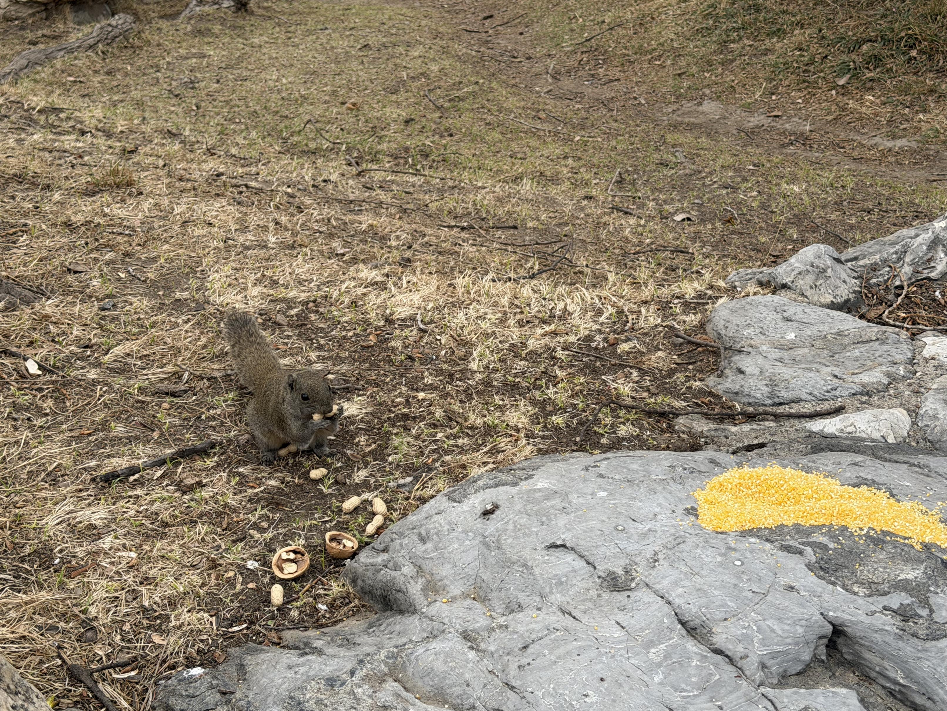 陶然亭公园,一只松鼠在“搬运”市民投喂的坚果。