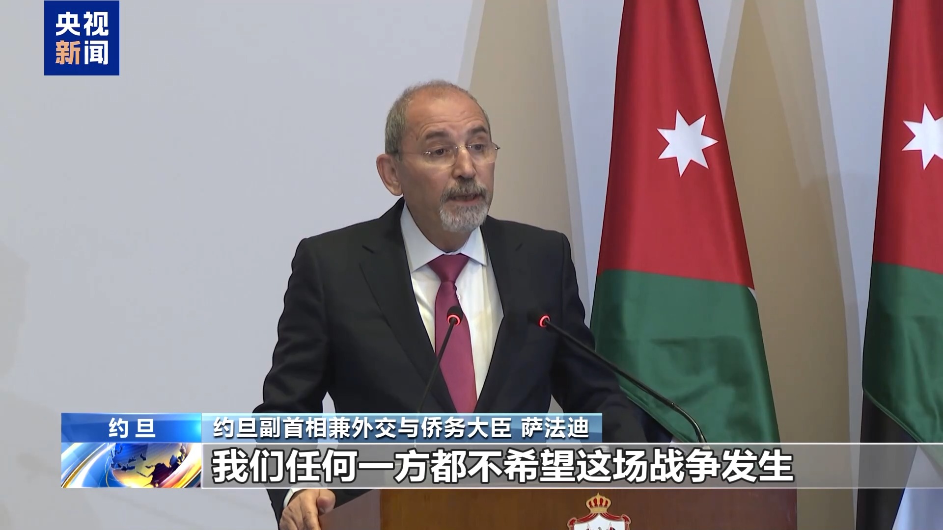 约旦副首相兼外交与侨务大臣 萨法迪:我们任何一方都不希望这场战争发生,我们希望达成的停火协议能够成为一项全面协议以确保地区的安全与稳定,确保尊重各国主权,确保不干涉内政,确保各方遵守国际法,同时也保障航行自由。